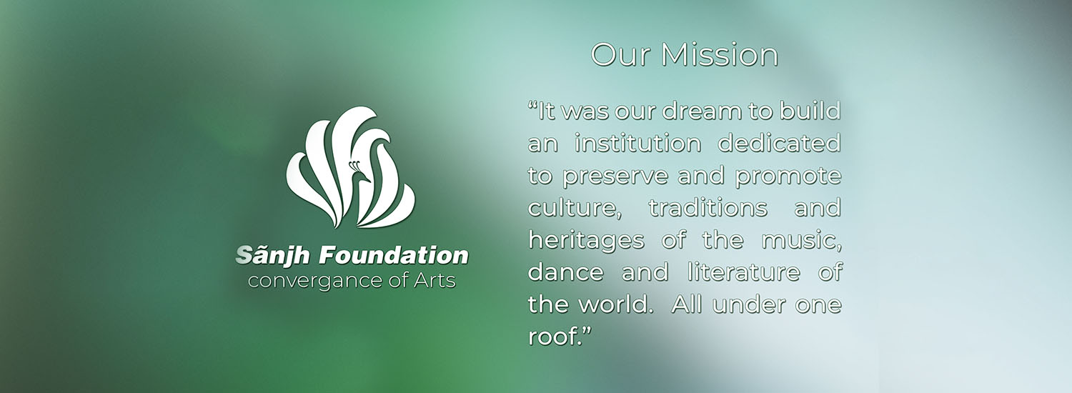 Sanjh foundation - a non-profit organization, dedicated to preserving and promoting the culture, traditions and heritage of music, dance and literature. It was a dream to build an institution where all the Cultures, Music and languages of the world can take place under one roof. Sanjh foundation especially focuses on the upcoming generation to provide such an environment where they will not only learn music, dance and language but can also realize the value of different cultural and musical heritage.